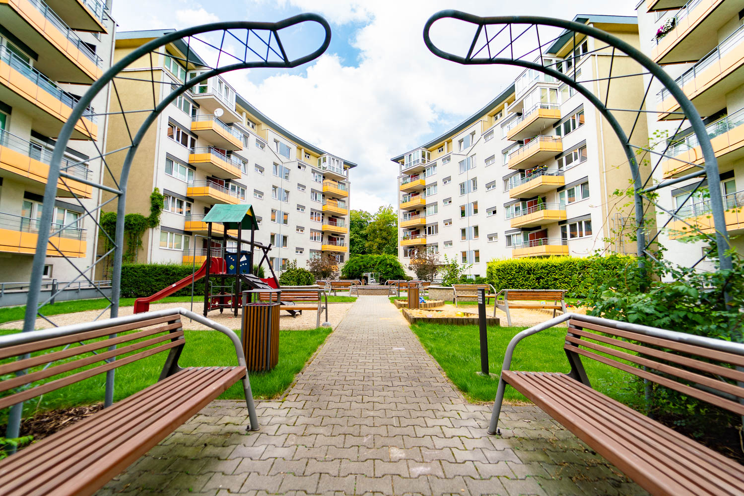 - součástí Atria je též zelený střed s dětským hřištěm. Pěkně v soukromí. Kámošům z rodinných domů, tak nemusíte závidět vlastně nic. Ba naopak. Vy to totiž máte bez starostí,