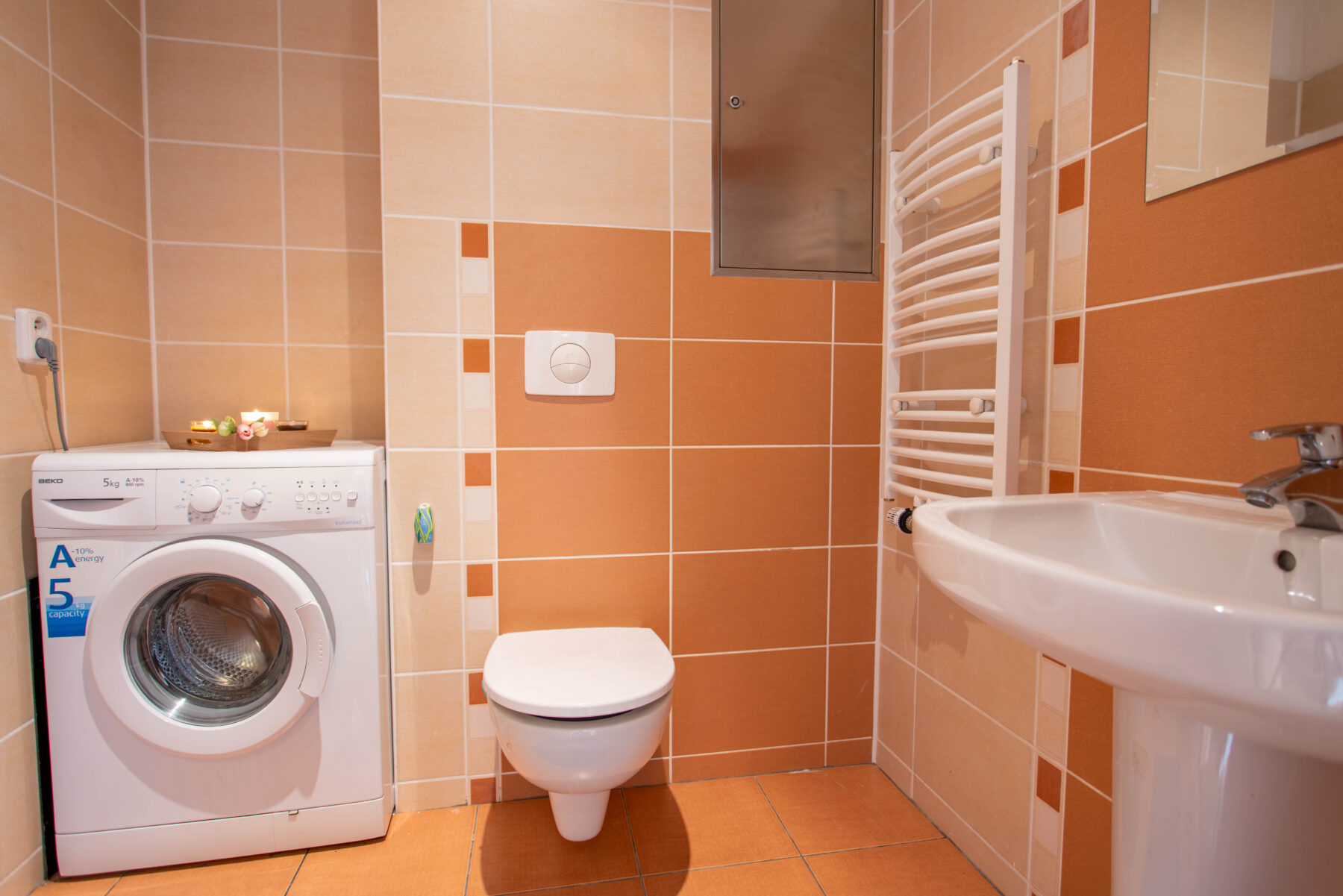 - je tady fakt velká vana i celá koupelna. Vlastně i záchod je nějak větší než obvykle. Dokonce tolik, že se tam vejde pračka,