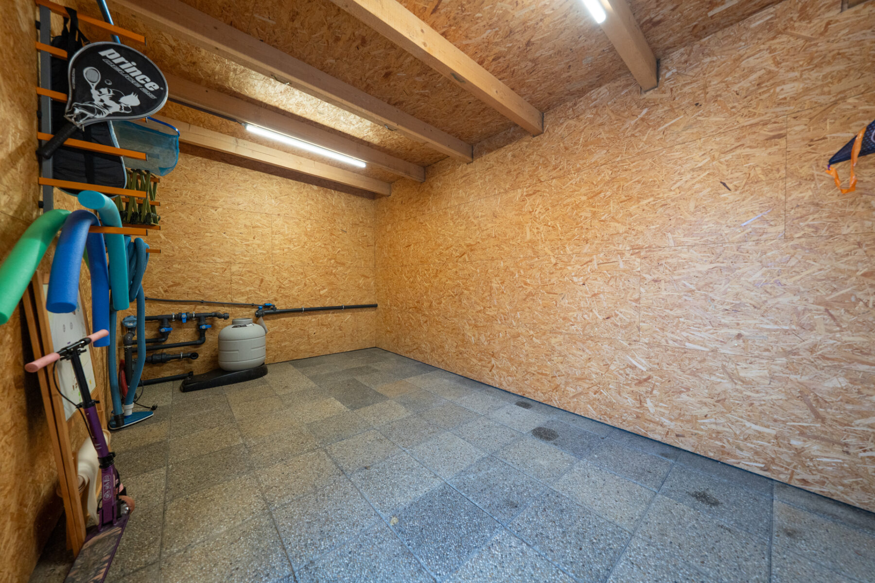 Líbí se mi i celková koncepce zahrady, protože vedle bazénu je prostor pro umístění lehátek a plynule navazuje na kůlnu, ze které lze vysunout markýzy k zastínění. V rámci maximálního užitku tady je ještě kůlna rozdělená na dvě sekce, totiž nářadí a sklad, kde můžete klidně i posedět s menší partou. Zbytek zahrady je udržovaný, s automatickou sekačkou i studnou. Oceníte i skleník, který je umístěn tak, aby nerušil celkový dojem z pěstěné části zahrady.