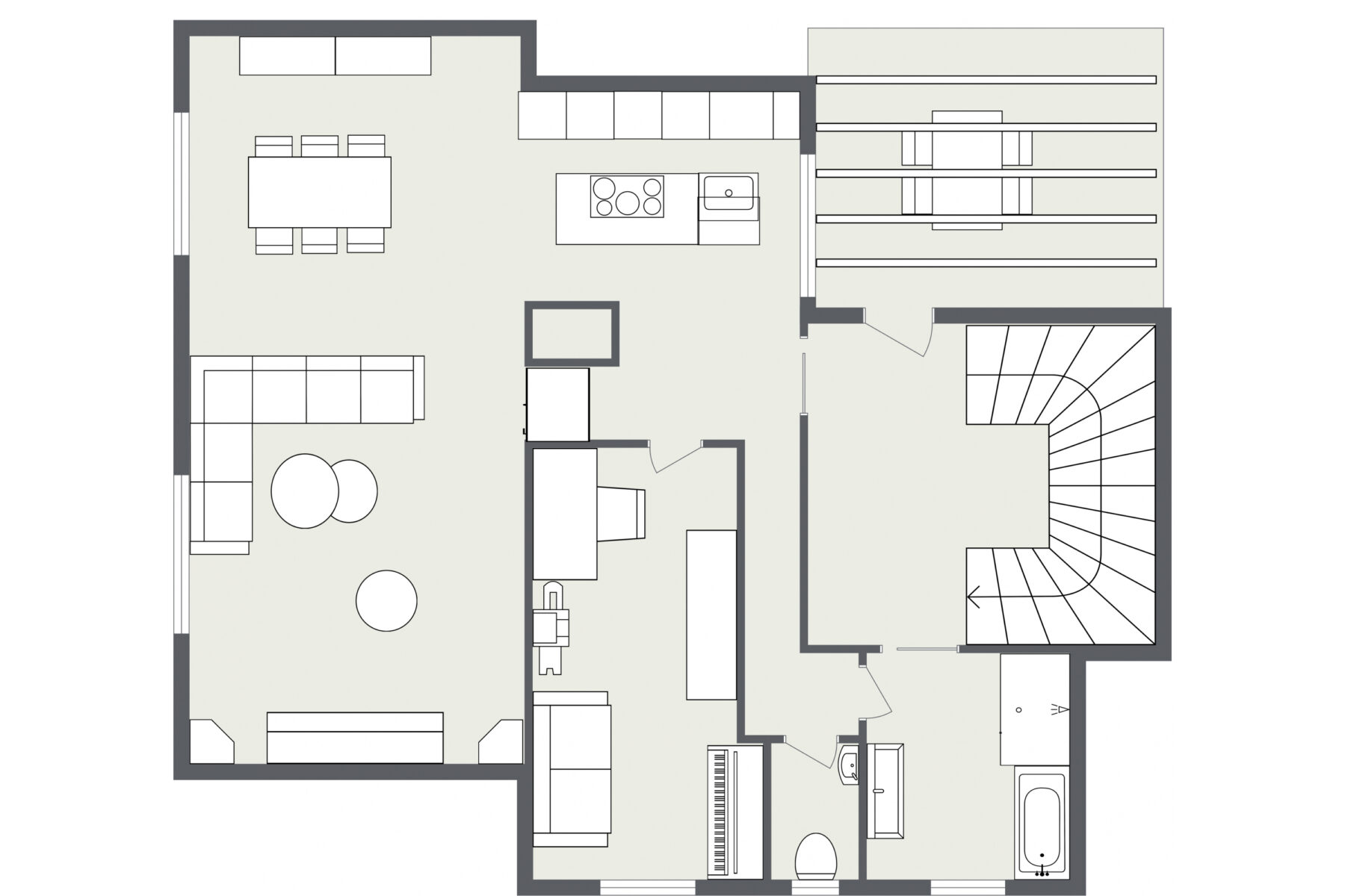 Kompletní rekonstrukce byla dokončena v létě 2019 a byla provedena nejen s důrazem na kvalitu zpracování, ale taky se dost přemýšlelo nad tím, aby celý dům dával smysl. Konečná dispozice je tak 6 +kk, přičemž jednu z místností majitelé využívají jako pracovnu a druhou jako velkou šatnu s prádelnou.