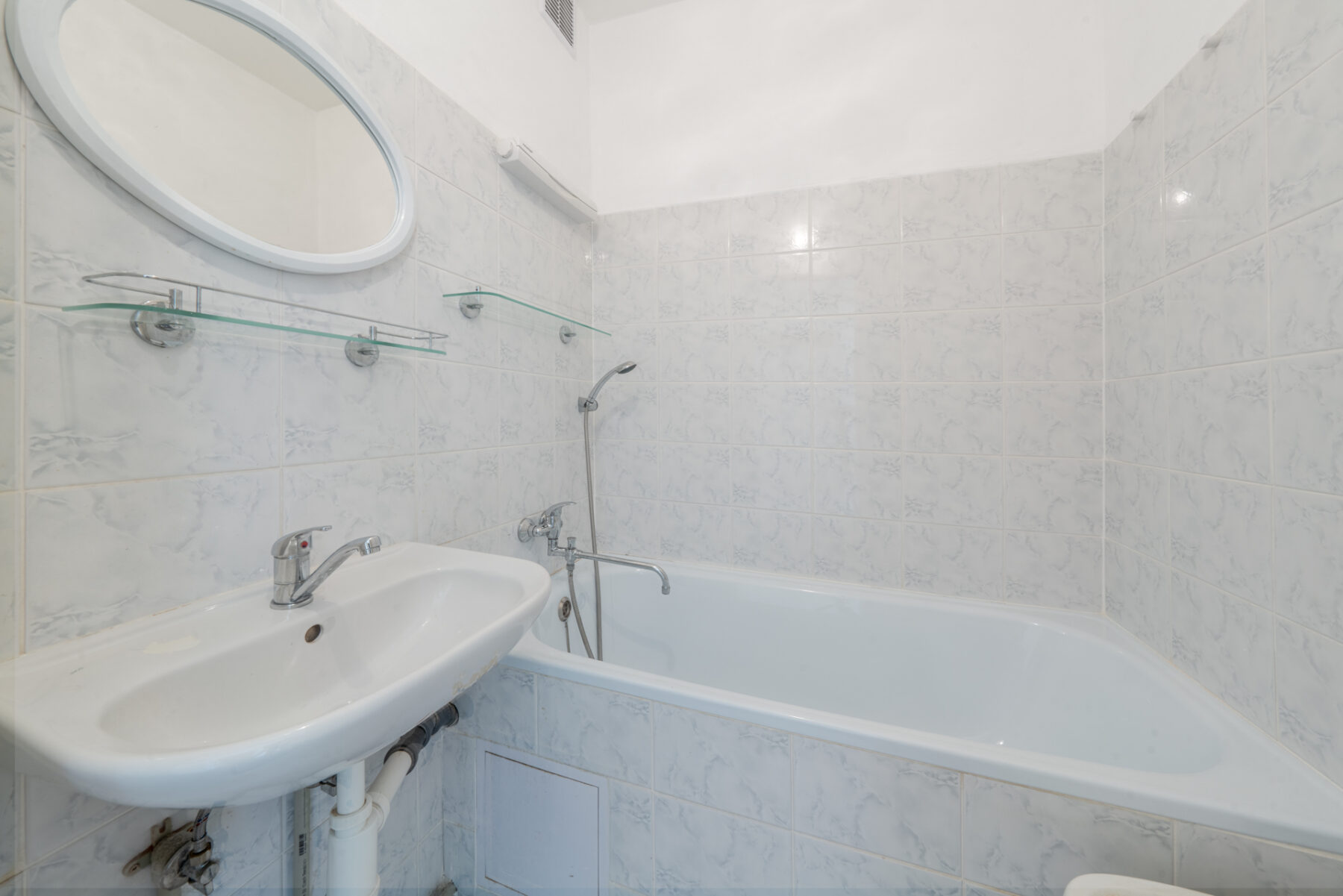 - koupelna rozšířením do celkem zbytečného průchodu do kuchyně získá na atraktivitě. V pohodě sem totiž vejde velká vana nebo sprcháč. Viděl jsem i oboje, ale to už musíš mít celkem názor a konfekční postavu,