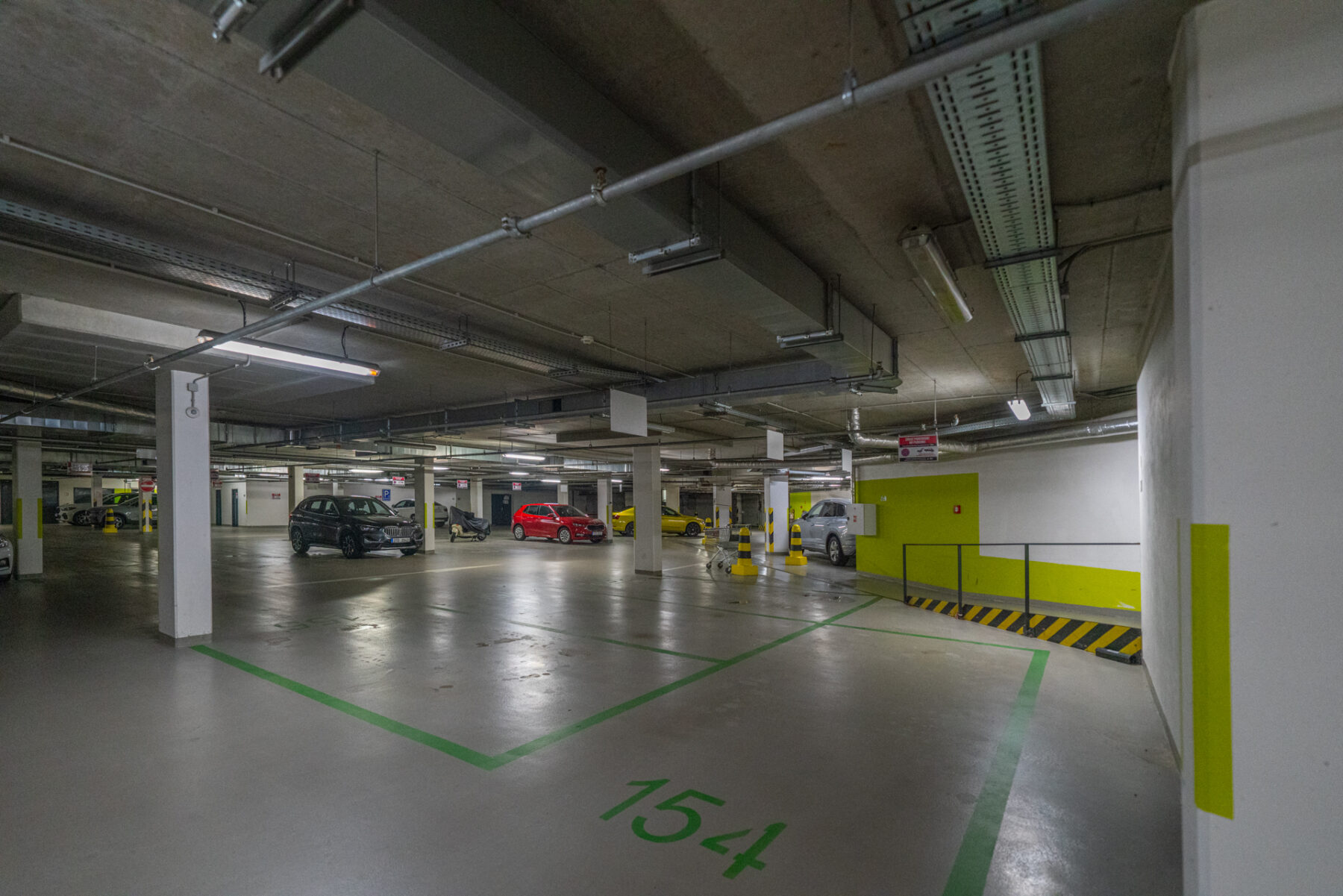 • je to o hodně, ale hodně novější než paneláky. Takže přijedeš do garáže, parkneš na svém vyhrazeném stání a dupinku vyvezeš výtahem až do bytu,