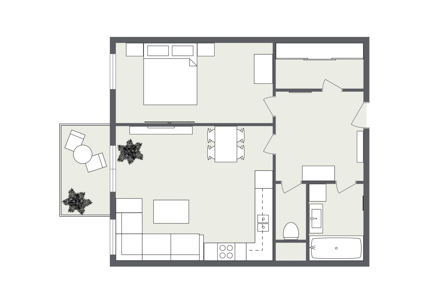 • dispozice je totálně skvělá. Možná si řekneš: co jako, dvakaka, jako všecky. Ale to by nebyla úplně pravda. Tohle má balkon se super výhledem, k tomu samostatnou šatnu a velkou koupelnu. Nic mi tady nepřišlo stísněné,