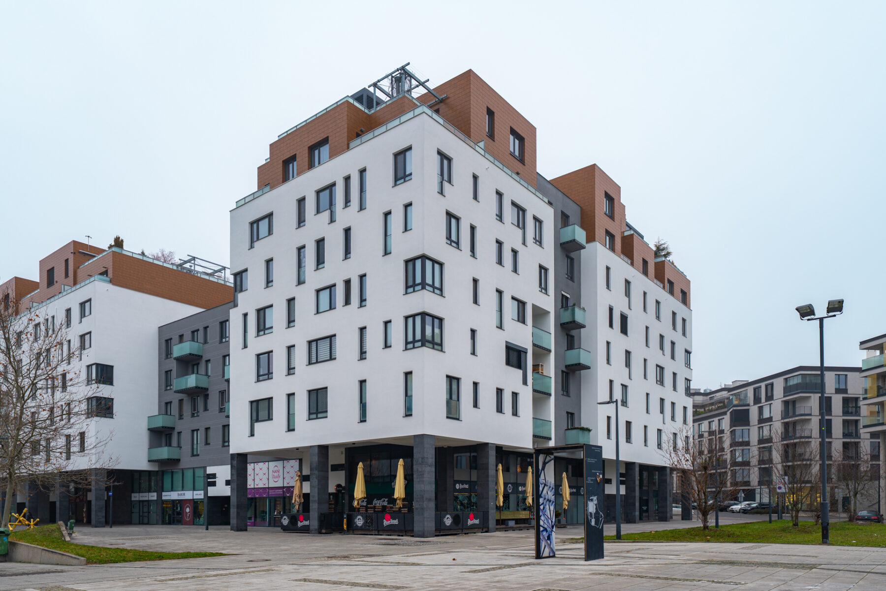 - je to o hodně, ale hodně novější než paneláky. Takže přijedeš do garáže, parkneš na svém vyhrazeném stání, vyvezeš se do bytu a dáš si na terase cokoli tě zrovna napadne,