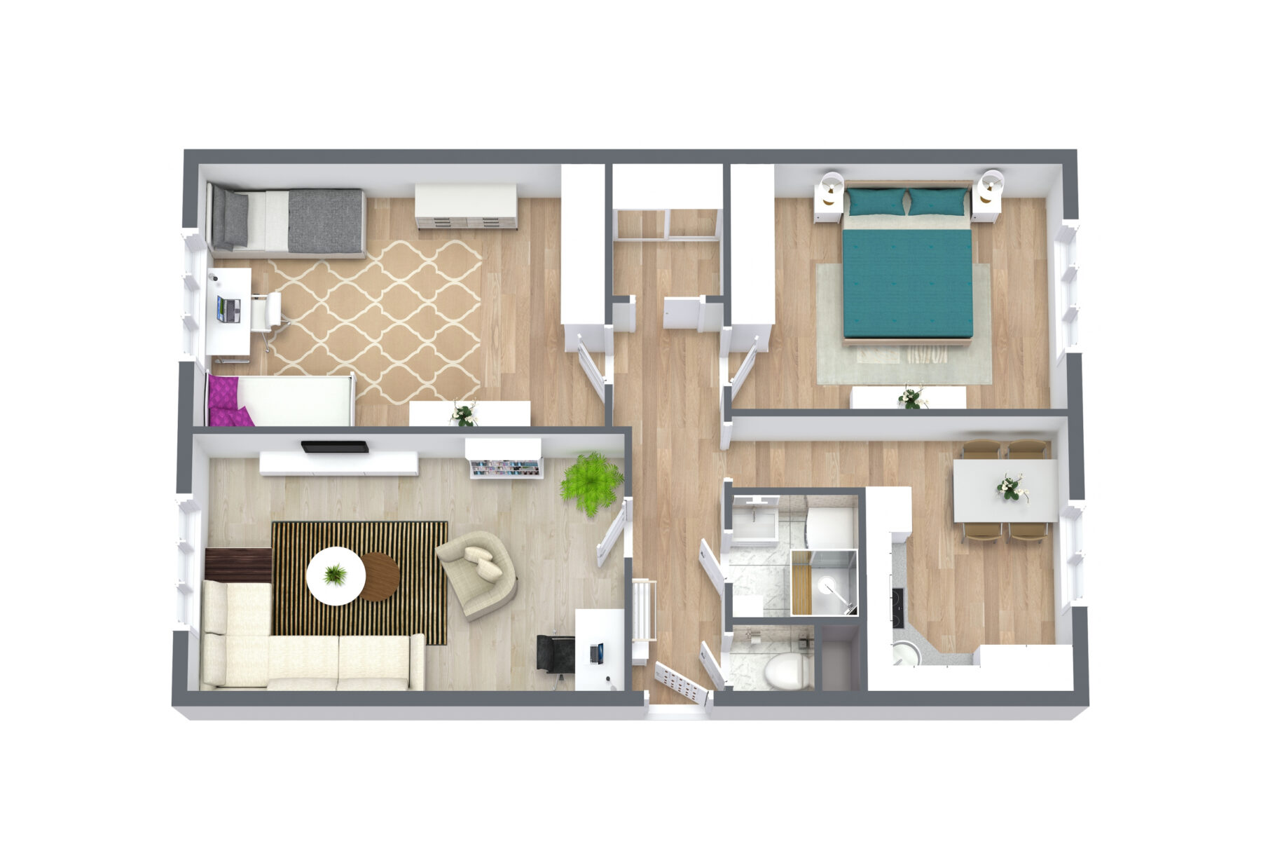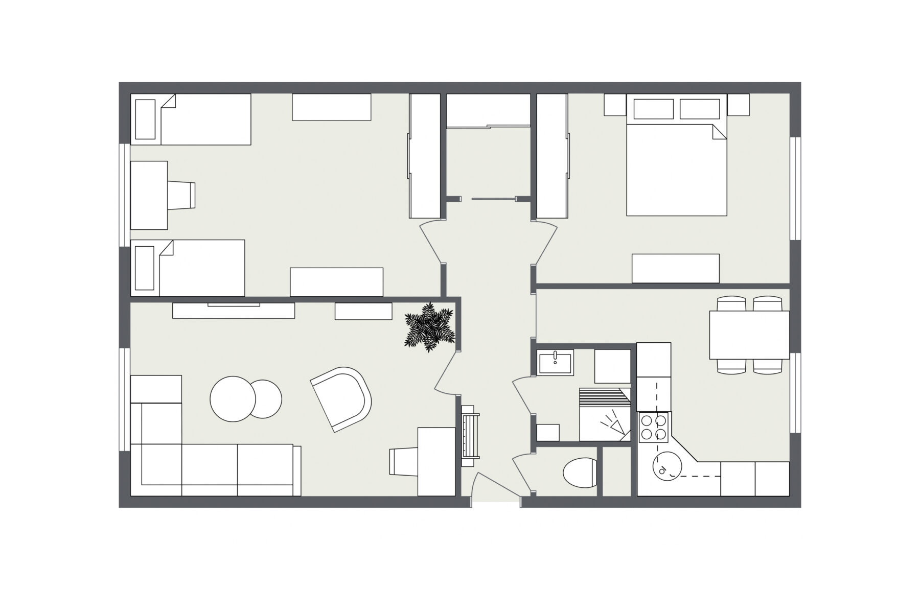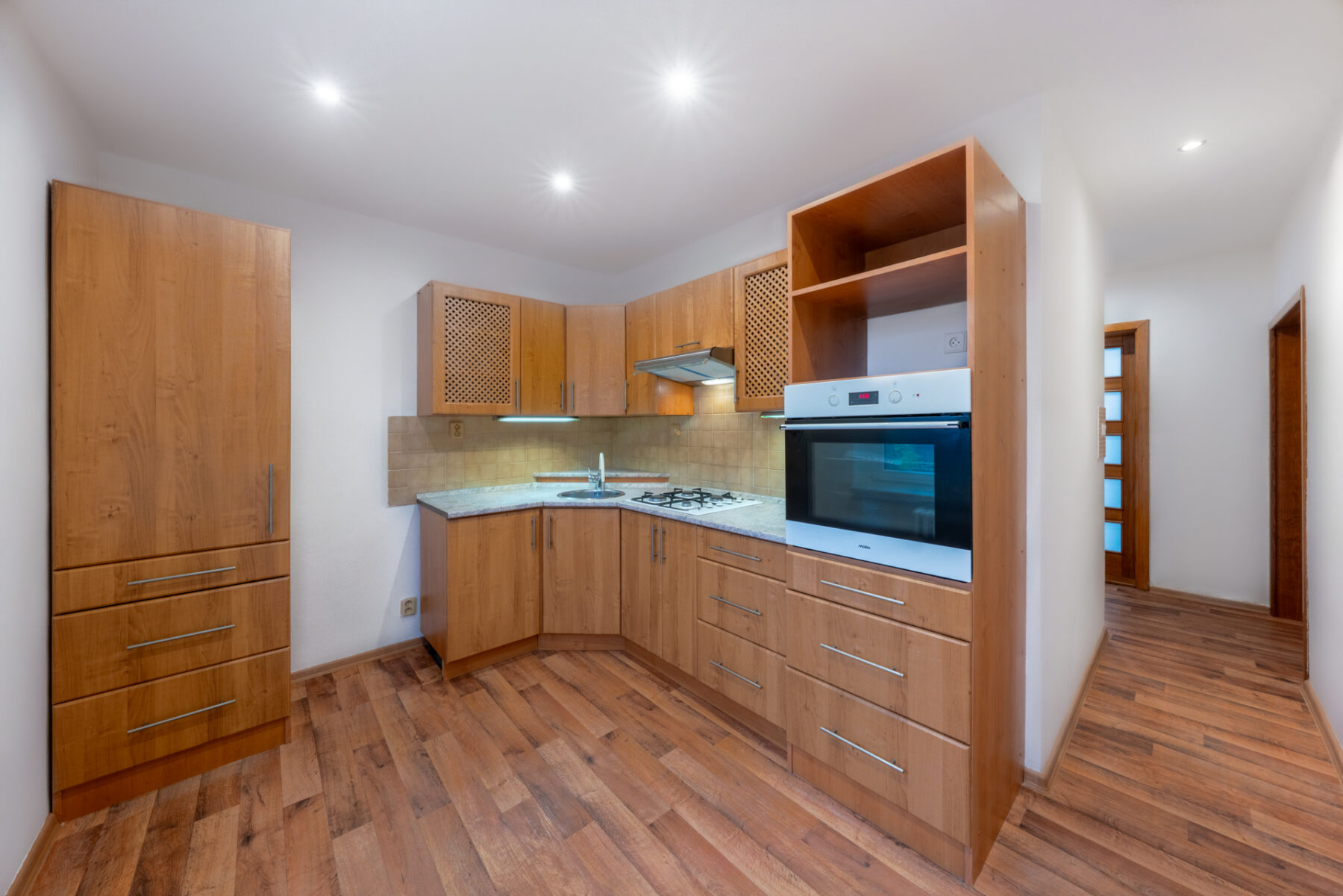 Je to pěkná, prostorná trojka. Celkem asi 76,8 metru bez sklepa. Oddělená kuchyň, tři vetší neprůchozí pokoje, koupelna, záchod a komora. Místa vpysk pro zhruba čtyřčlennou rodinu.