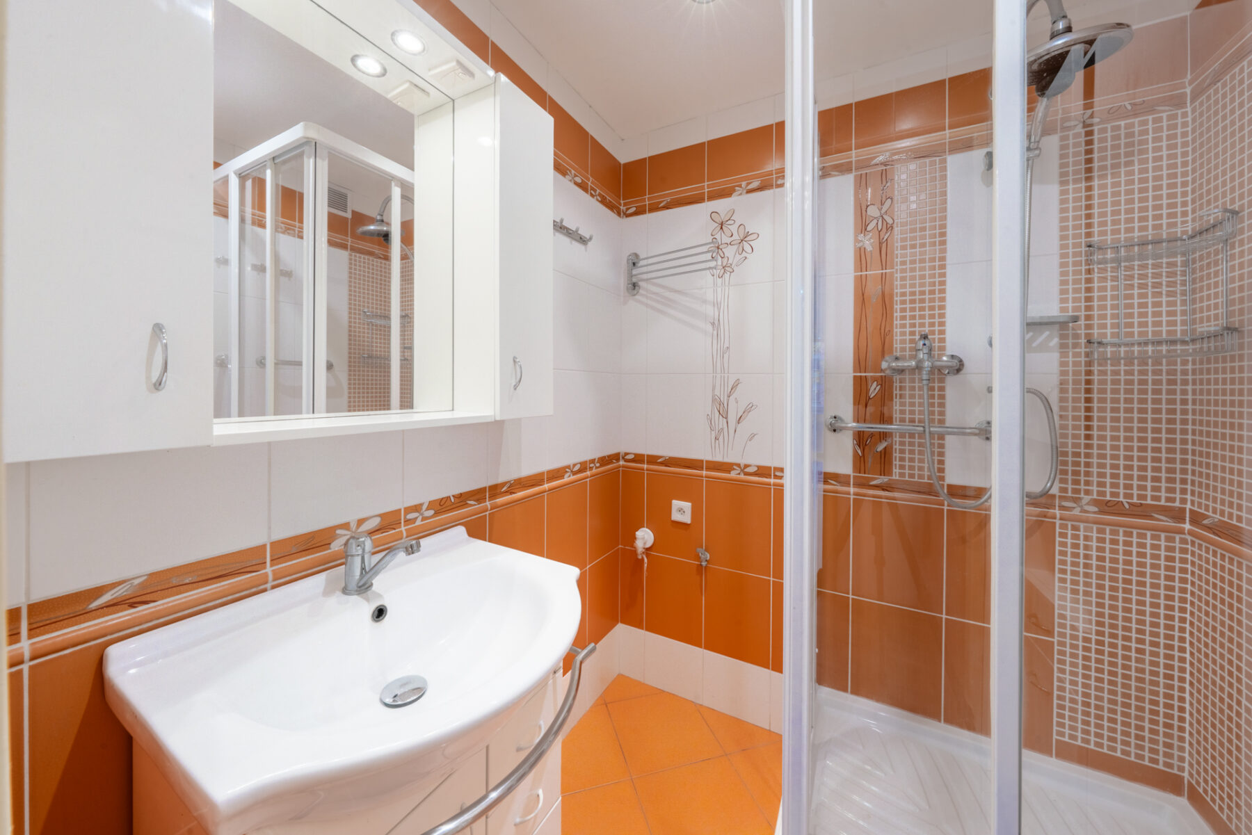 • Nebude ti tu nic překážet pro to, ať si můžeš přestěhovat věci. Byt je vyklizený, nově vymalovaný a čistý. Detail, která mě baví jsou mozaiky pod vypínačema. Utřeš a čisté, ikdyž si budeš muset rozsvítit v kuchyni po cestě pro další čtyry chleby s bůčkem a hořčicí,
